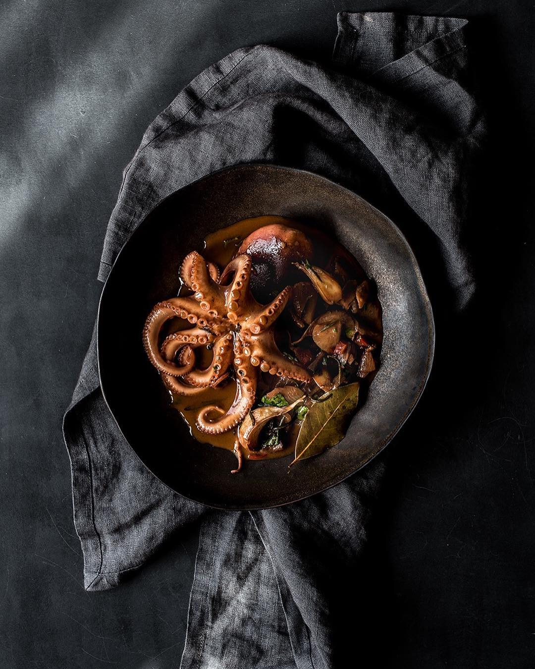 Отварной осьминог под соусом из сладкого перца и оливкового масла960